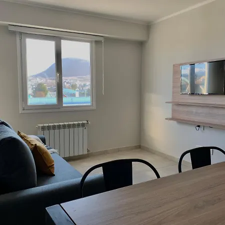 A hegyre néző kilátással büszkélkedhető Las Cumbres Ushuaia apartman körülbelül 1,3 km-re van az Islas Malvinas tér területétől. Az apartmanban csempe padló van.